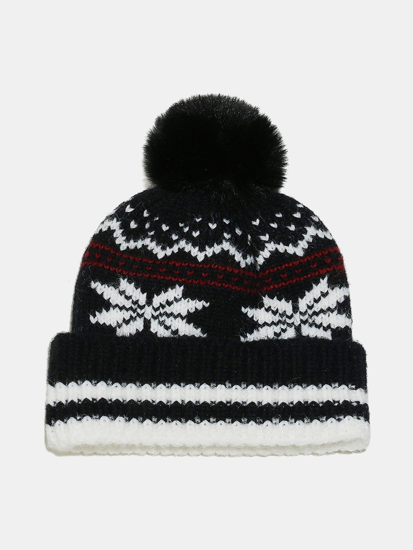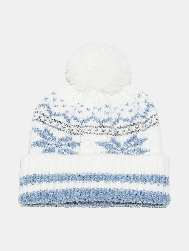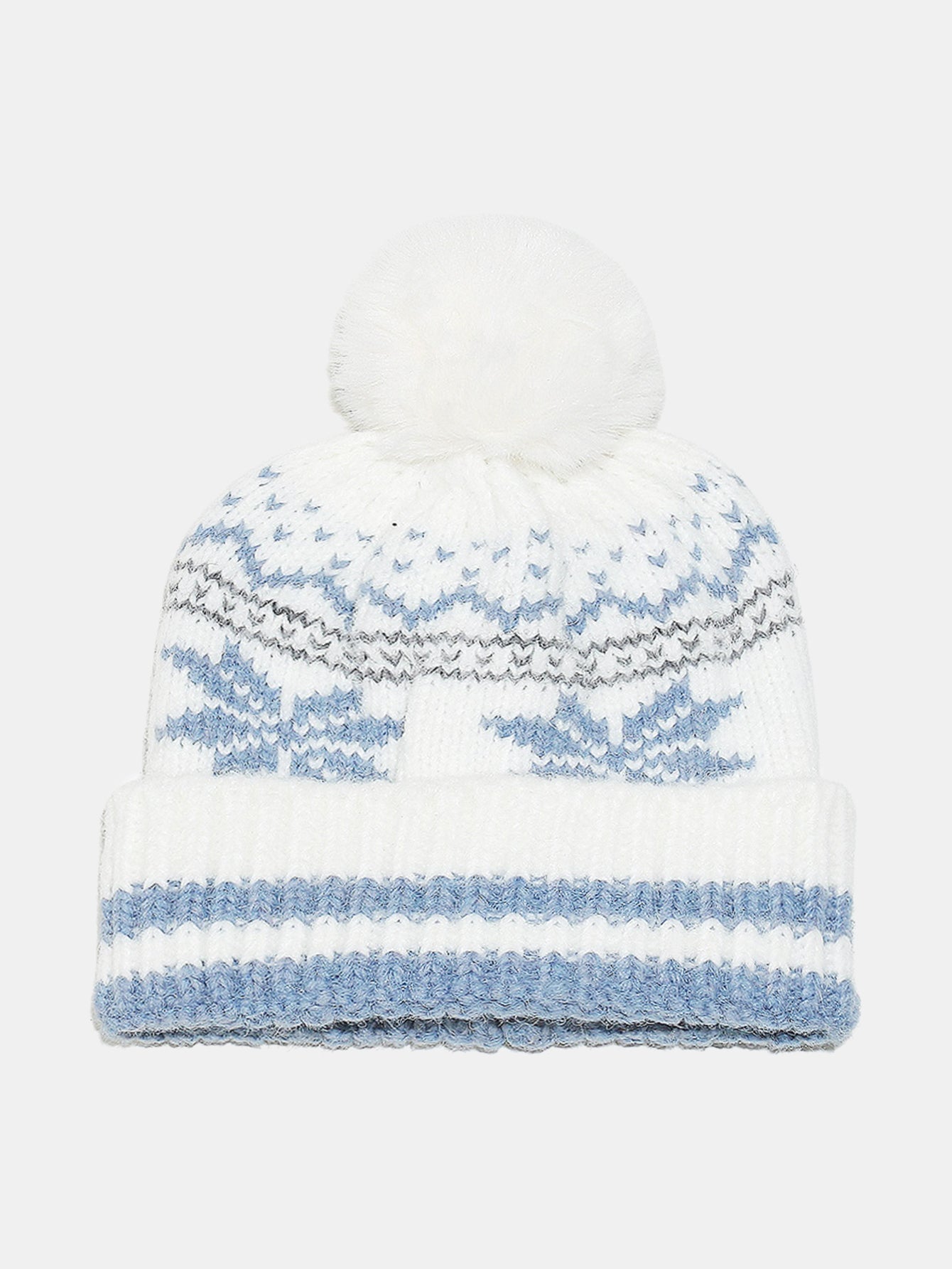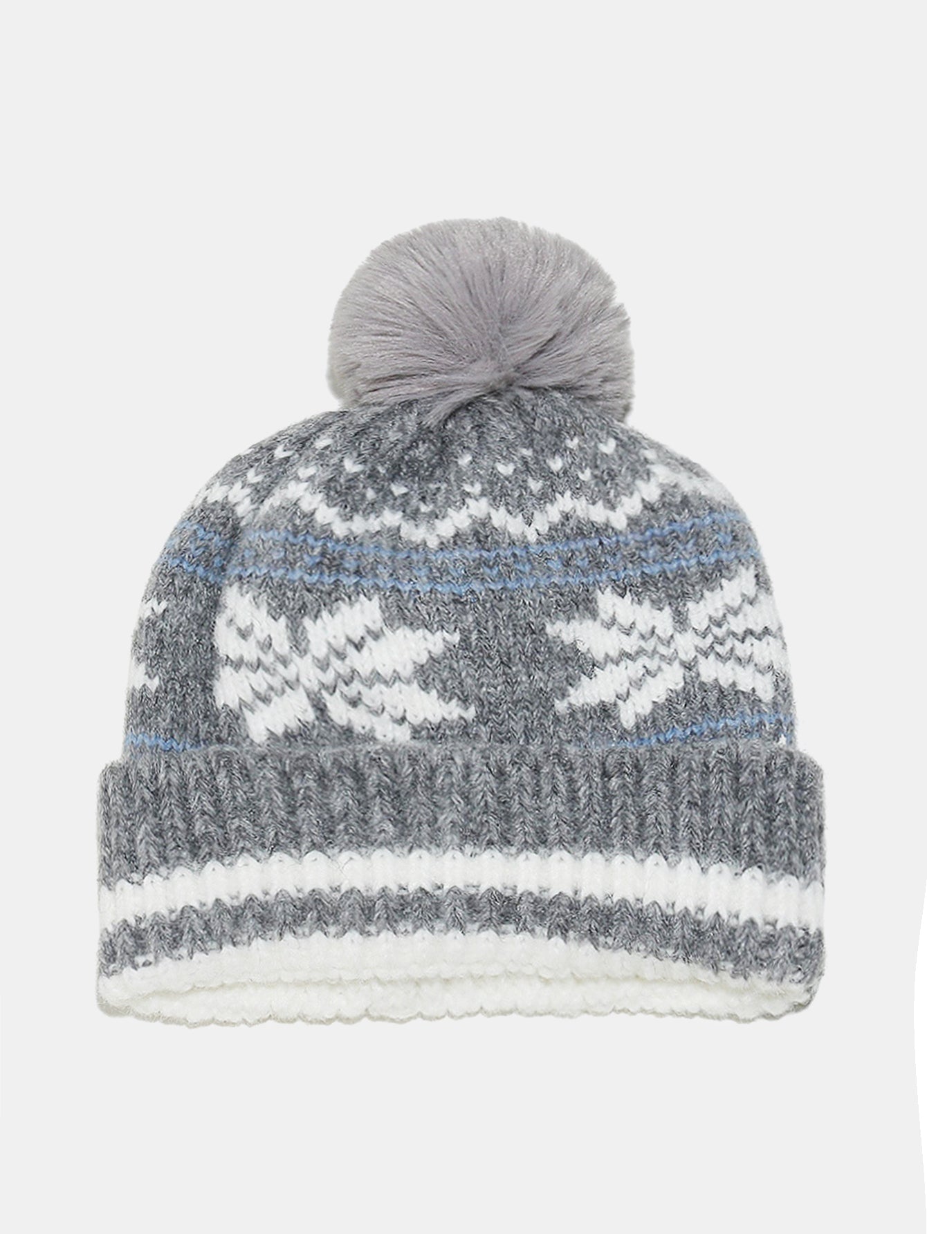 Snowflake Pattern Pom-pom Warm Knitted Hat