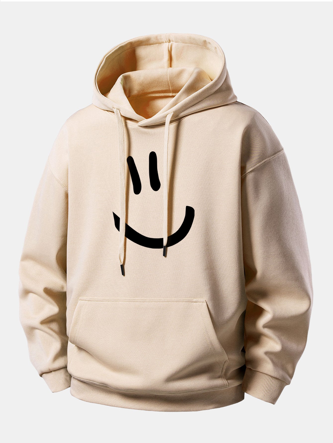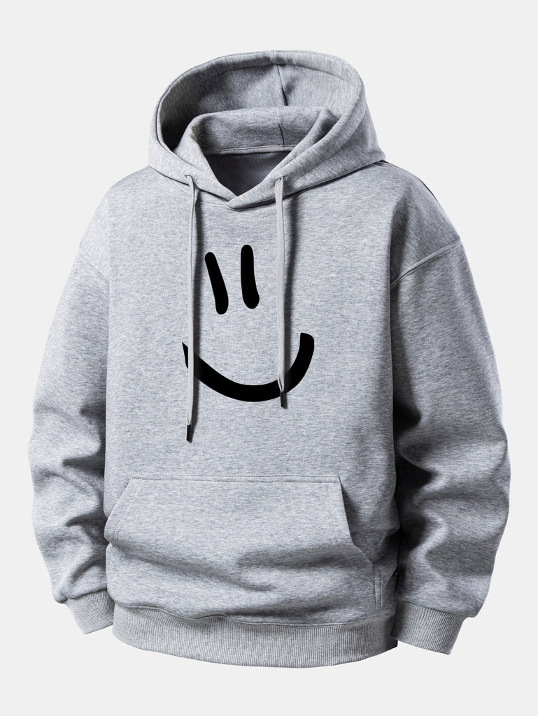 Featuring a bold and playful smiley face graphic, this hoodie combines fun style with cozy comfort. Its relaxed fit ensures freedom of movement, while the adjustable drawstring hood allows for a customizable, snug fit. Crafted from soft, breathable fabric, it's perfect for lounging, casual outings, or streetwear looks. Ribbed cuffs and hem provide added comfort and durability.