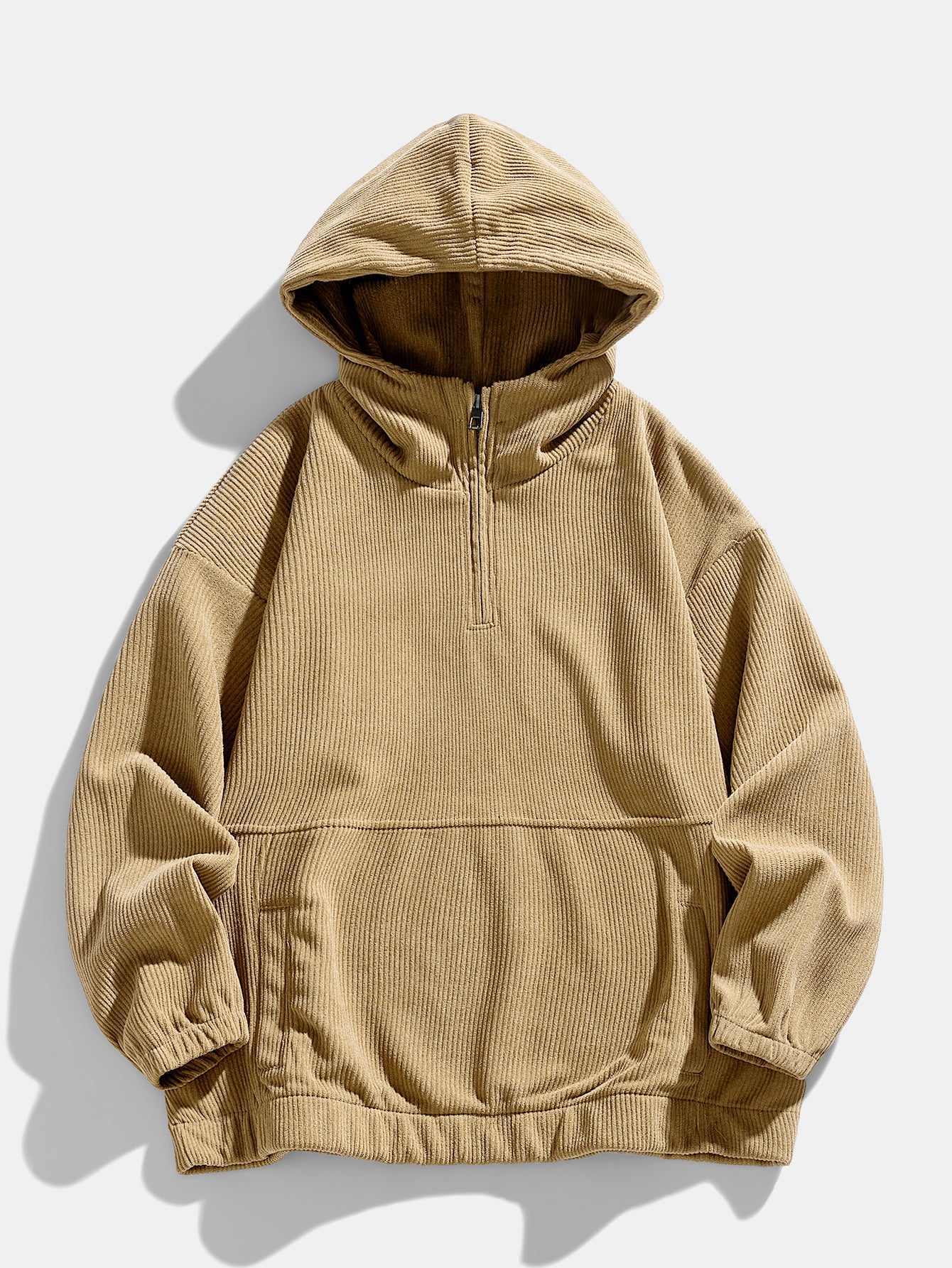 Relax Fit Quarter-Zip Corduroy Hoodie